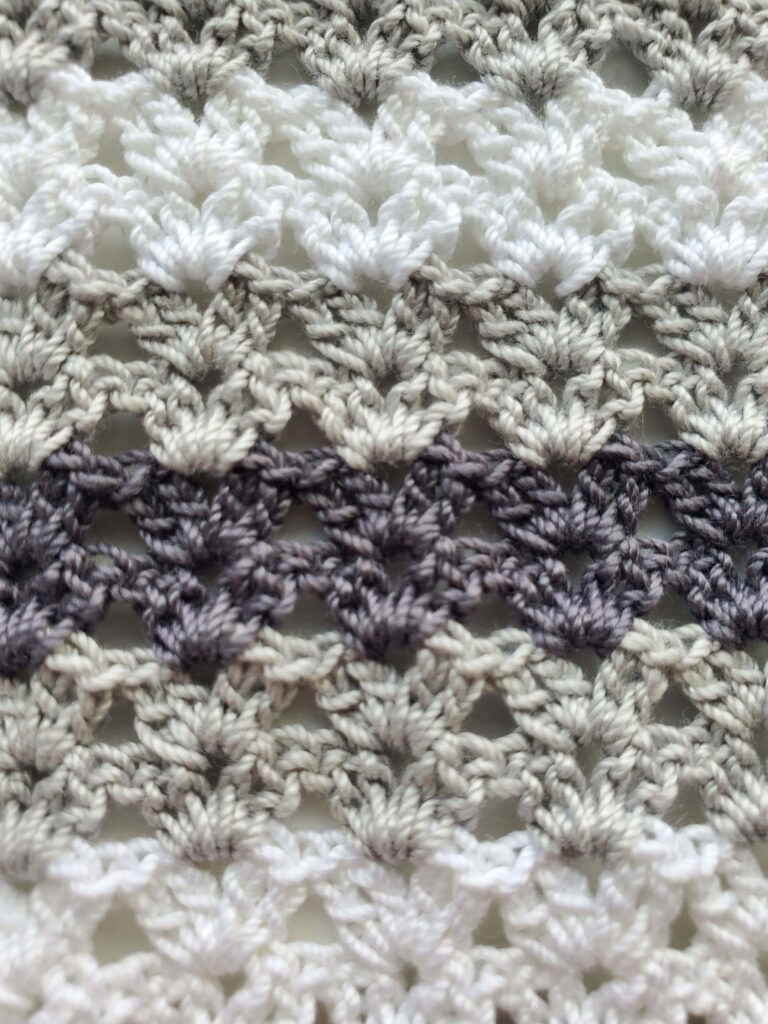 Another great crochet stitch pattern from My Picot. In this pattern, you’ll create a shell of 6 double crochets, and on the next row, work puff stitches on the top of those double crochets. The effect creates a lovely, textured fabric of alternating shells.
