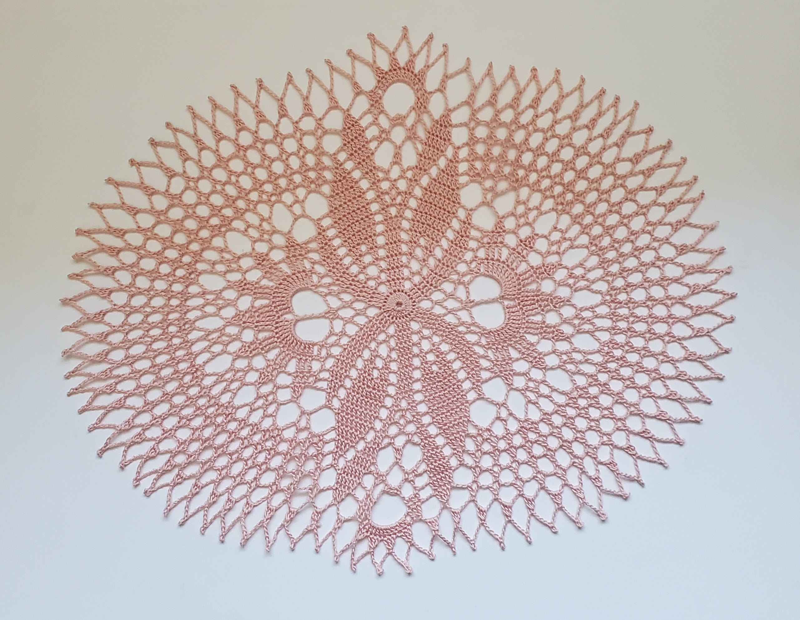 I couldn’t think of another name for this doily, so many of them go unnamed! This one however is in Polish again. I think these are leaf motifs and a flower or heart like Motif on the edges of the doily. It’s an amazing design and I actually enjoyed doing this one.